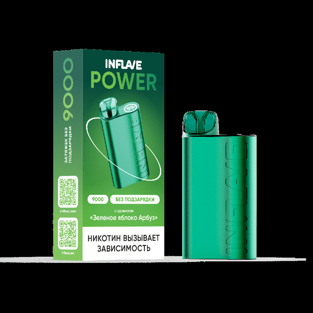 Электронная сигарета INFLAVE POWER 9000 затяжек Зеленое Яблоко Арбуз - купить в Западной Двине